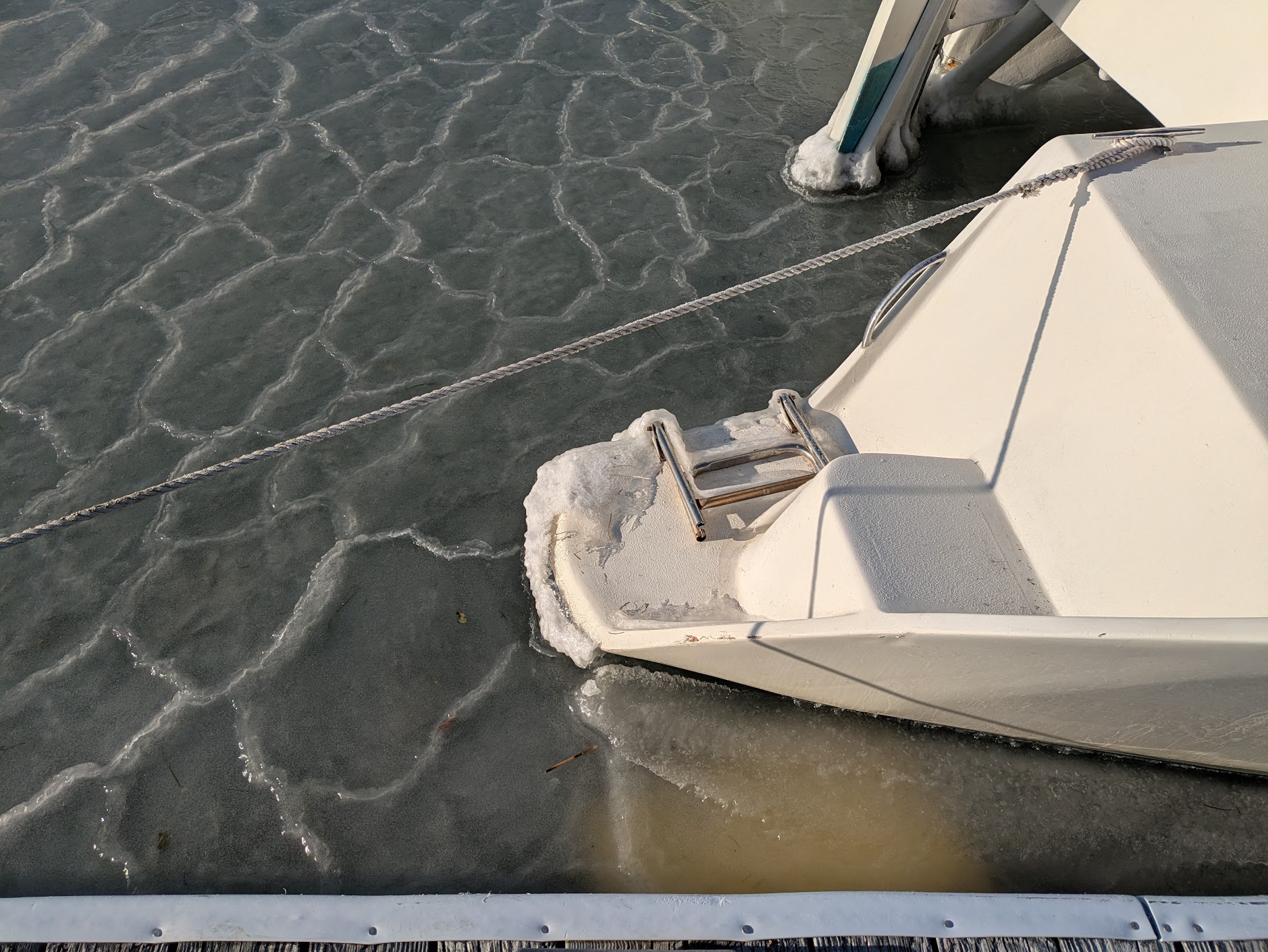 A frozen swim-ladder, something to keep in mind if I have to self-rescue.
